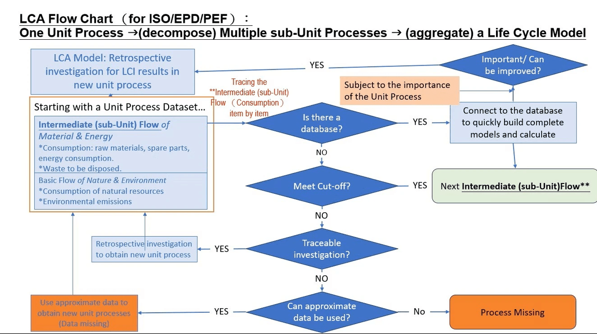 One Unit Process →(decompose) Multiple sub-Unit Processes → (aggregate) a Life Cycle Model